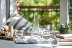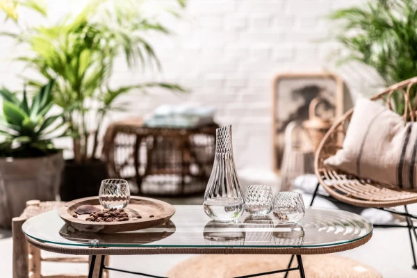 Harmonie und Raffinesse vereinen sich in der Serie Manoa. In Zusammenarbeit mit dem bekannten Designer Sebastian Herkner sind eine Glaskaraffe und passende Tumbler entstanden. Die in sich gedrehte Form macht das Set zu einem einzigartigen Hingucker. Klare geschwungene Linien umschmeicheln Wasser, Weine und Schorlen und lassen die Getränke wundervoll schimmern – das Servieren wird zu einem Highlight.