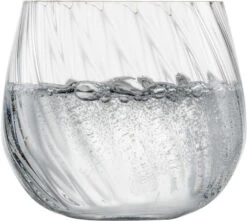 Handgefertigt vereint die Serie Manoa traditionelle Handwerkskunst und modernes Design. Die bauchige Form und die leicht gewellte Struktur des Glases bestechen optisch auf jedem Tisch und haptisch in jeder Hand.