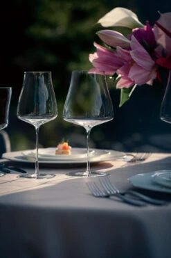 Das Rotweinglas Pinot Noir der Serie The Moment von ZWIESEL GLAS ermöglicht durch breiten Kelch eine perfekte Aromaentfaltung für samtige und üppige Weine. Der gelippte Rand des Rotweinglases drückt die Säure nach außen und lässt den Wein auf der Zunge milder und jünger wirken.